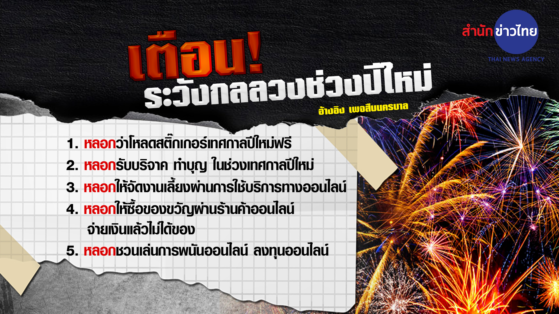 31 ธ.ค.- เพจสืบนครบาล โพสต์เตือนประชาชน ระวังกลลวงในช่วงเทศกาลปีใหม่ อย่าหลงเชื่อมิจฉาชีพ