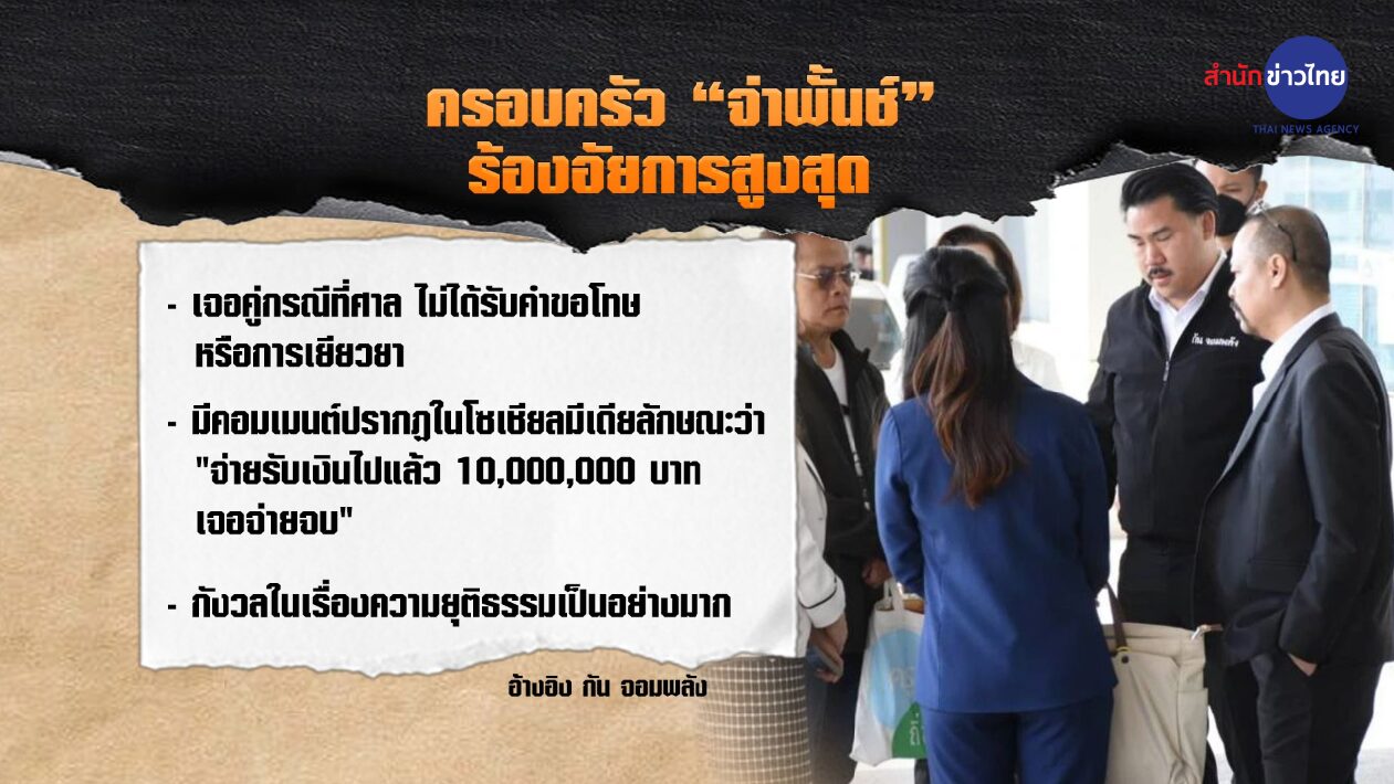 นายกัณฐัศว์ เปิดเผยว่า คดีนี้ตนได้ช่วย ครอบครัวผู้เสียหายมาตั้งแต่แรก ซึ่ง สภ.หัวหิน ทำคดีไม่ถึง 1 เดือน ก่อนส่งเรื่องไปให้อัยการ แต่พอไปถึงชั้นอัยการ ทางครอบครัวเริ่มรู้สึกเกิดความไม่สบายใจ เนื่องจากภรรยาของจ่าพั้นช์ได้ไปเห็นเนื้อหาข้อความในสำนวนที่อัยการเขียนไว้ จนทำให้ทางภรรยารู้สึกว่าไม่เป็นธรรม หลังจากนั้นภรรยาจ่าพั้นช์ได้เจอคู่กรณีที่ศาล แต่ไม่ได้รับคำขอโทษ หรือการเยียวยา แต่มีคอมเม้นต์ปรากฏในโซเชียลข้อความลักษณะว่า จ่ายรับเงินไปแล้ว 10,000,000 บาท เจอจ่ายจบ ทำให้ทางครอบครัว กังวลในเรื่องความยุติธรรมเป็นอย่างมาก