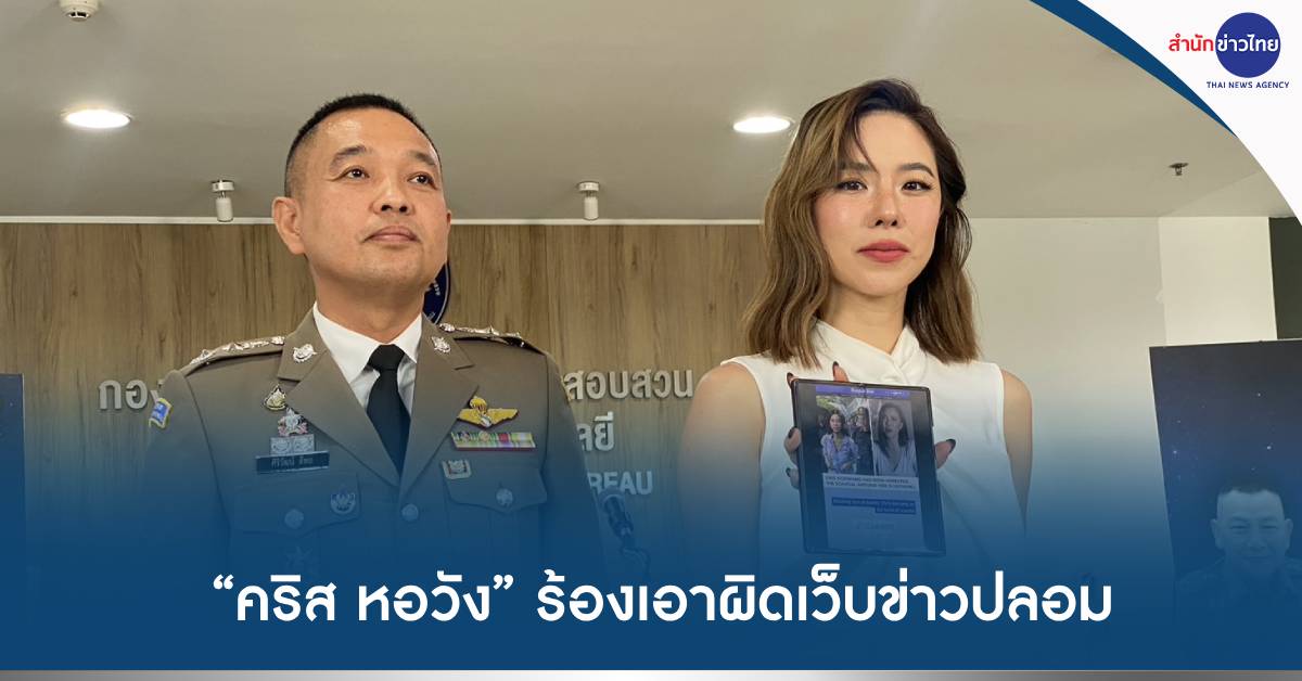 “คริส หอวัง” ดารานางแบบชื่อดังเดินทางเข้าร้องทุกข์กับ พล.ต.ท.ไตรรงค์ ผิวพรรณ ผู้บัญชาการตำรวจสืบสวนสอบสวนอาชญากรรมทางเทคโนโลยี หรือตํารวจไซเบอร์ หลังถูกเว็บข่าวปลอมปล่อยเฟคนิวส์จนได้รับความเสียหาย