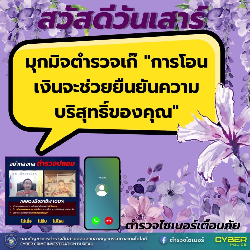 การส่งต่อ “ภาพสวัสดีตอนเช้า” ผ่าน Application Line จะทำให้ประชาชนสามารถเข้าใจได้ง่าย และโครงการนี้มีเป้าหมายเพื่อลดความเสี่ยงจากการถูกหลอกลวงในโลกออนไลน์ และสร้างเกราะป้องกันภัยไซเบอร์ในชีวิตประจำวัน ด้วยข้อมูลที่เข้าถึงง่ายและน่าจดจำ.-420-สำนักข่าวไทย