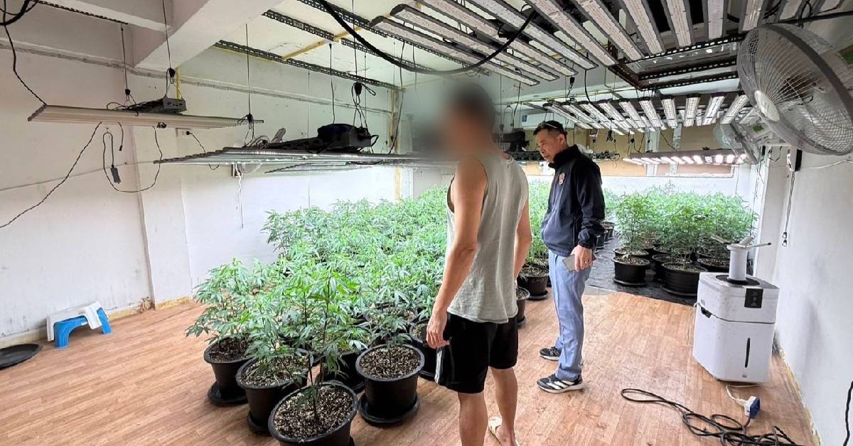 โดยอาคารพาณิชย์หลังดังกล่าวมีขนาด 3 คูหา จำนวน 4 ชั้น พบว่าที่บริเวณชั้น 1 ถูกดัดแปลงเป็นสถานที่เก็บปุ๋ยและห้องพักของคนงาน สามารถนอนได้อย่างน้อย 6-7 คน ส่วนชั้น 2 ของอาคารพาณิชย์ พบว่ามีการดัดแปลงให้เป็นห้องที่มีสภาพสำหรับเพาะปลูก มีการติดตั้งอุปกรณ์เพาะปลูก อุปกรณ์สำหรับปรับสภาพอากาศ ติดแอร์กับพัดลม และให้น้ำให้แสง โดยที่ชั้น 2 นี้ พบต้นกัญชาโตเต็มวัยอยู่ภายในห้องประมาณ 108 ต้น พบต้นกัญชาขนาดเล็กที่อยู่ในระหว่างการเพาะชำอีก 136 ต้น รวมทั้งต้นกัญชาเพิ่งแตกยอดอ่อนและเมล็ดสำหรับเตรียมงอกอีกประมาณ 455 ต้น รวมทั้งพบถุงดอกกัญชาแปรรูปอบแห้งจำนวน 1 ถุง