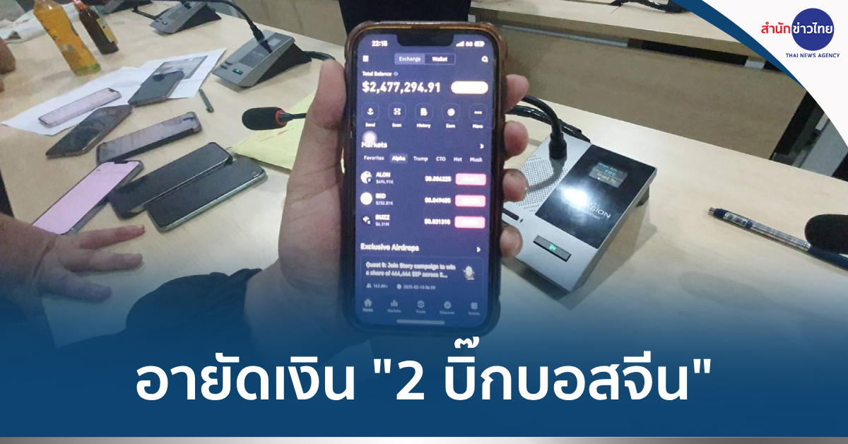 กรุงเทพฯ 8 ก.พ. – นายกฯ ประสานความร่วมมือตำรวจจีน ร่วมชุด PCT ตำรวจไทย ขยายผล 2 บิ๊กบอสจีน ตรวจพบและยึดอายัดเงินกระเป๋าวอลเล็ตลับ 2,500,000 USDT หรือประมาณ 84 ล้านบาท และเป็นตัวการสำคัญในการจัดหาคนไปยังประเทศเพื่อนบ้านทาง อ.แม่สอด จ.ตาก