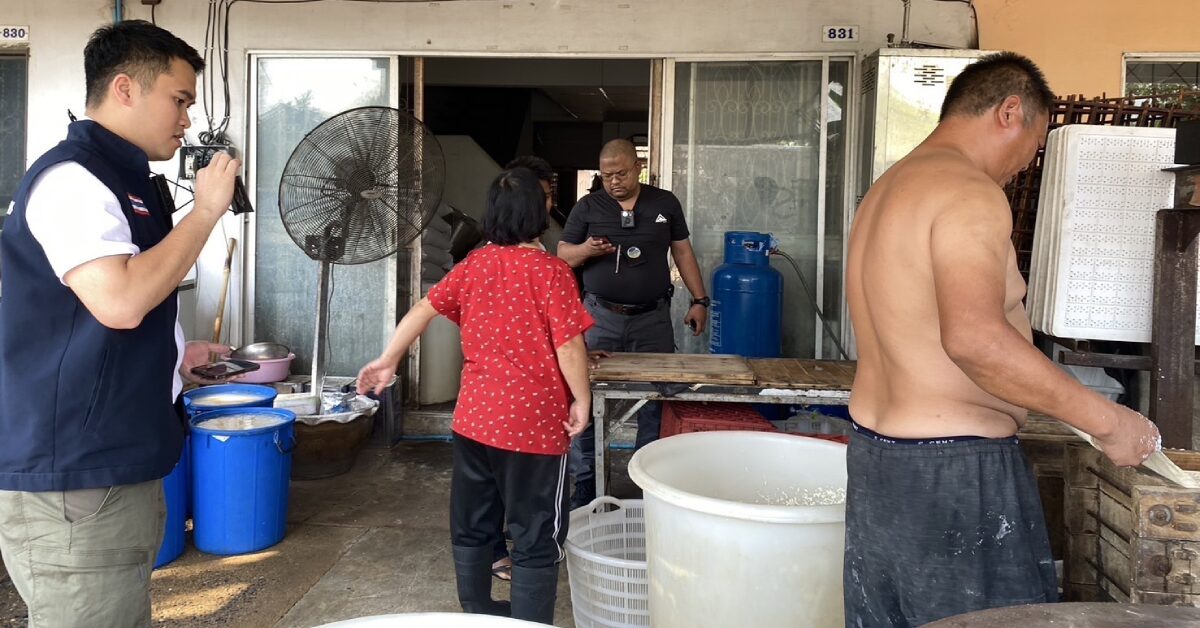 กทม. 11 ก.พ. – ผกก.สน.ห้วยขวาง ผนึกกำลังสำนักงานจัดหางาน พื้นที่ 10 กรมการจัดหางาน จับชาวจีนลักลอบทำเต้าหู้ขายส่งร้านอาหารจีน มีรายได้วันละ 1-2 พันบาท