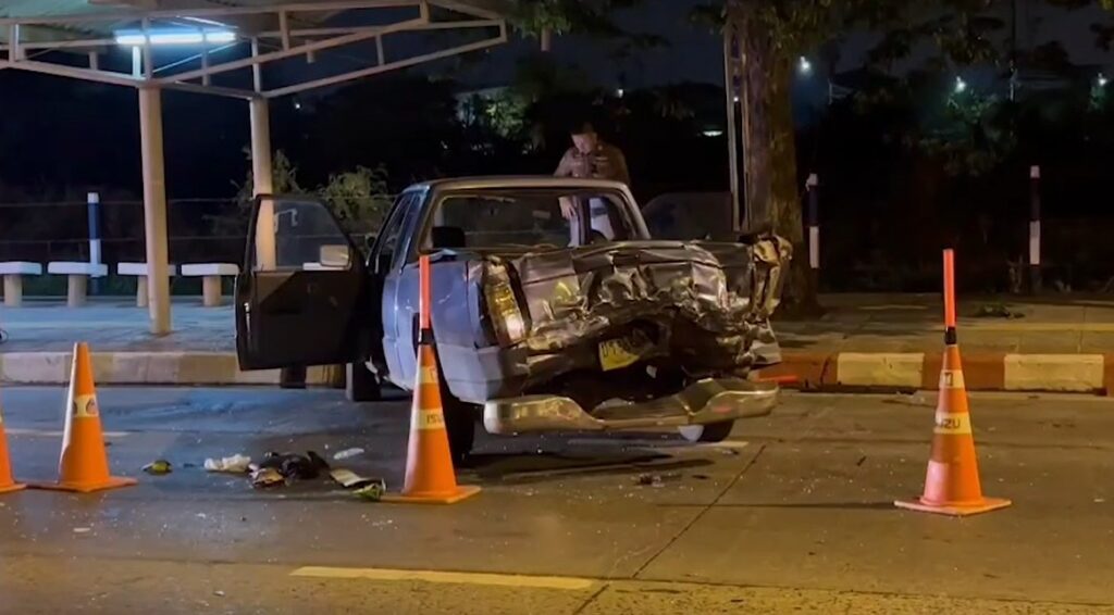 สอบถามนายนายสุเทพ คนขับรถบรรทุก 6 ล้อ บอกว่า ขับรถกลับมาจาก จ.กาญจนบุรี หลังไปส่งเหล็กทำถนน แล้วจะกลับไปที่ทำงานย่านร่มเกล้า ระหว่างทางก้มหยิบโทรศัพท์และไม่เห็นด่าน และมีรถคนอื่นบังอยู่เลยชนรถกระบะเข้าเต็มๆ ยืนยันว่าไม่ได้ดื่มสุรา เจ้าหน้าที่ตำรวจ สน.คันนายาว คุมตัวนายสุเทพไปสอบสวนเพิ่มเติมที่สถานีตำรวจ และตรวจหาสารเสพติดในร่างกาย ก่อนแจ้งข้อกล่าวหาดำเนินคดี.-สำนักข่าวไทย