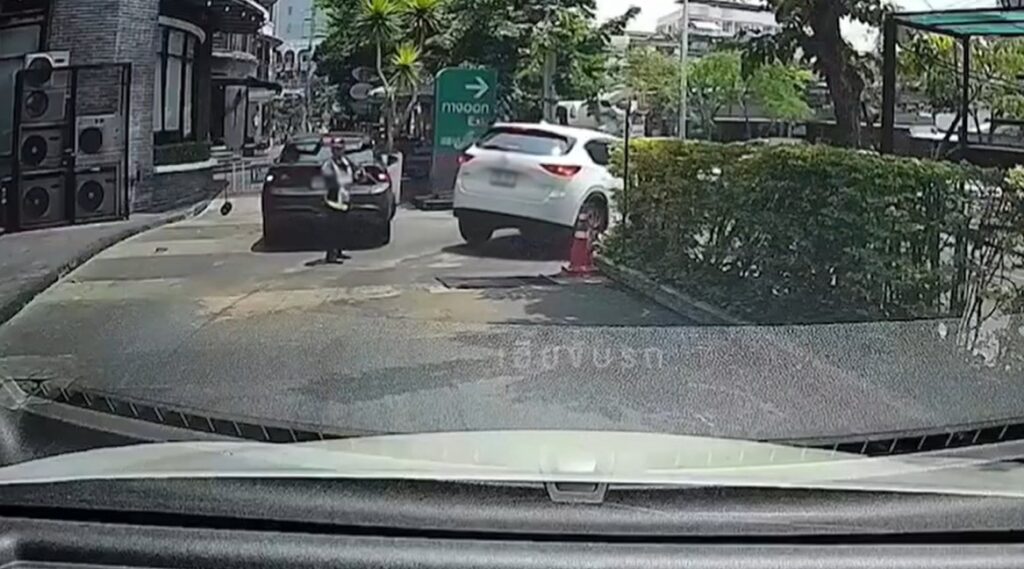 เพจ “เฮียขับรถ” โพสต์คลิปจากกล้องหน้ารถ จับภาพรถยนต์คันหนึ่งถอยชน รปภ.ห้างสรรพสินค้าย่านเจริญนคร โดย รปภ. เดินเข้าไปหาคนขับ คนขับลงมาจากรถและมีปากเสียงกัน จากนั้นจะขับออกไป รปภ. ก็เดินไปอยู่ตรงหัวมุม เหตุการณ์บานปลายเมื่อคนขับลงจากรถแล้วเข้ามาชก รปภ. 4 หมัด แม้จะมีคนห้ามปรามแต่ยังไม่มีทีท่าหยุดแต่อย่างใด จนสุดท้ายชายหัวร้อนหยิบโทรศัพท์มือถือ รปภ. ปาใส่อีกครั้ง ก่อนขึ้นรถขับออกไป