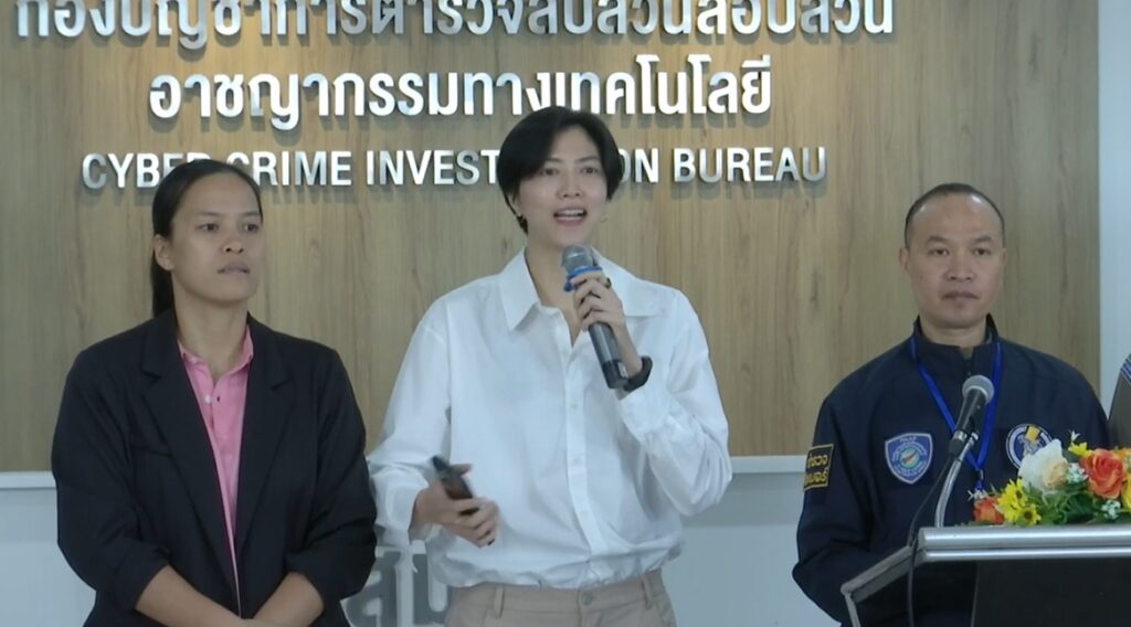 “หน่อง” ปลื้มจิตร์ ถินขาว อดีตนักกีฬาวอลเลย์บอลทีมชาติไทย และ “กิ๊ฟ” วิลาวัณย์ อภิญญาพงศ์ อดีตกัปตันวอลเลย์บอลทีมชาติไทย เข้าพบ พล.ต.ท.ไตรรงค์ ผิวพรรณ ผู้บัญชาการตำรวจไซเบอร์ และ พล.ต.ต.ศิริวัฒน์ ดีพอ ผู้บังคับการตำรวจสืบสวนสอบสวนอาชญากรรมทางเทคโนโลยี 1 เพื่อร้องเอาผิดผู้ที่เอาชื่อและรูปไปหลอกประชาชนลงทุนออนไลน์