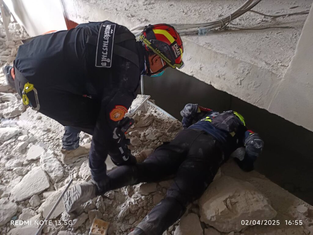 ส่วนโอกาสที่จะพังถล่มซ้ำถ้าขุดไม่เป็น และไม่มีความชำนาญ เช่น ดึงจากข้างล่างออกก่อน ข้างบนก็จะถล่มทันที ดังนั้นเป็นไปได้หมด หากรื้อไม่เป็นหรือไม่ถูกวิธี เพราะฉะนั้นเราต้องประเมินเรื่องความลาดชันตลอดเวลาของซากอาคาร หากไปดึงจุดไม่ถูกต้องจะไปกระตุกทั้งหมดให้ถล่มลงมา แต่หากใช้วิธีขั้นบันไดที่ทำอยู่โอกาสที่จะถล่มซ้ำเป็นไปได้ยาก และจะสังเกตุได้ว่า เจ้าหน้าที่ไม่ได้คีบเอาเศษปูนจากด้านบนออกก่อน แต่มีการกำกับและดูแลเรื่องของการดึงชิ้นส่วนออกอยู่ตลอดเวลา