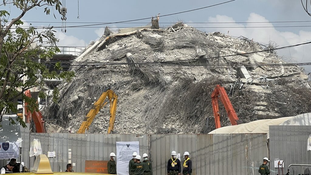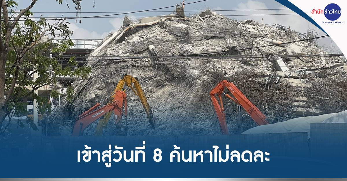 กทม. 5 เม.ย.-เข้าสู่วันที่ 8 หลังเเกิดเหตุแผ่นดินไหว เจ้าหน้ายังคงเดินหน้าทำงานต่อเนื่อง ช่วยเหลือผู้ประสบเหตุอาคาร สตง. ถล่ม ขณะที่ผู้ค้าในเจเจมอลล์ ซึ่งอยู่ตรงข้ามกับที่เกิดเหตุ ยอมรับว่าวันนี้บรรยาการเงียบเหงา แม้จะเป็นวันหยุด