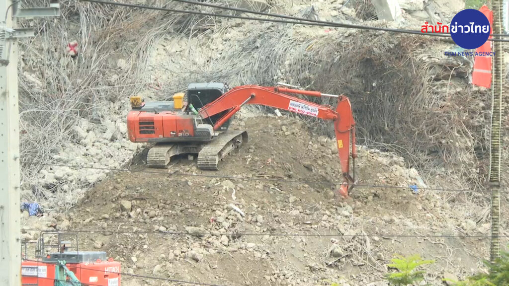 เจ้าหน้าที่ยังคงใช้รถแบ็กโฮและเครื่องจักรหนัก เข้ารื้อถอนและจัดการพื้นที่โดยรอบอาคาร สตง.ถล่ม ซึ่งเป็นภารกิจที่ดำเนินการต่อเนื่องมาเป็นวันที่ 12 แล้วหลังเหตุการณ์แผ่นดินไหว เพื่อค้นหาร่างผู้สูญหายที่ติดอยู่ในซากปรักหักพัง