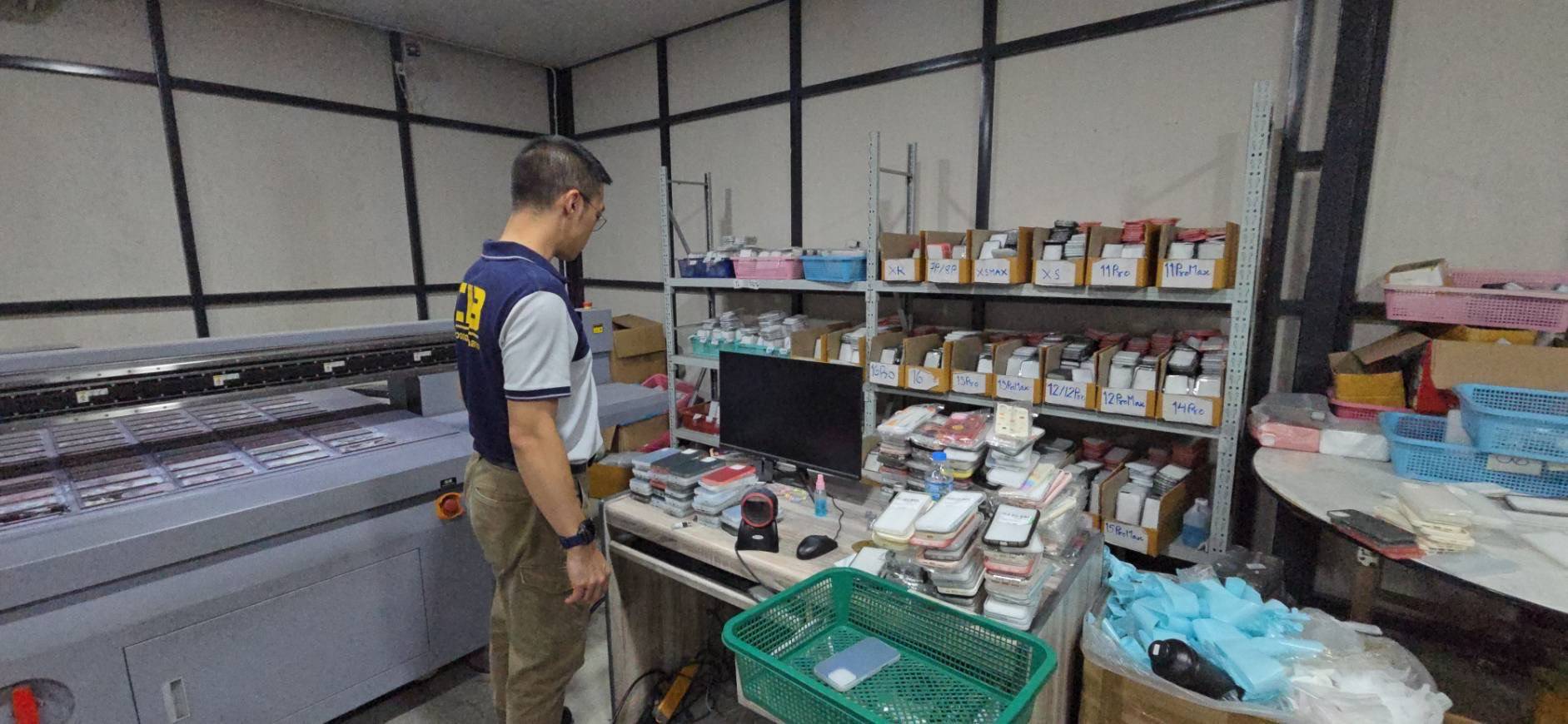 นอกจากนี้เจ้าหน้าที่ตำรวจยังตรวจพบเครื่องสกรีนสำหรับพิมพ์ลายเคสโทรศัพท์ขนาดใหญ่ จำนวน หลายเครื่อง ซึ่งผู้ต้องหาใช้สำหรับพิมพ์ลายลงบนเคสโทรศัพท์ปลอมเครื่องหมายการค้าฯ ส่งจำหน่ายไปยัง ร้านค้า และแพลตฟอร์มจำหน่ายสินค้าออนไลน์ต่างๆ ทั่วประเทศ