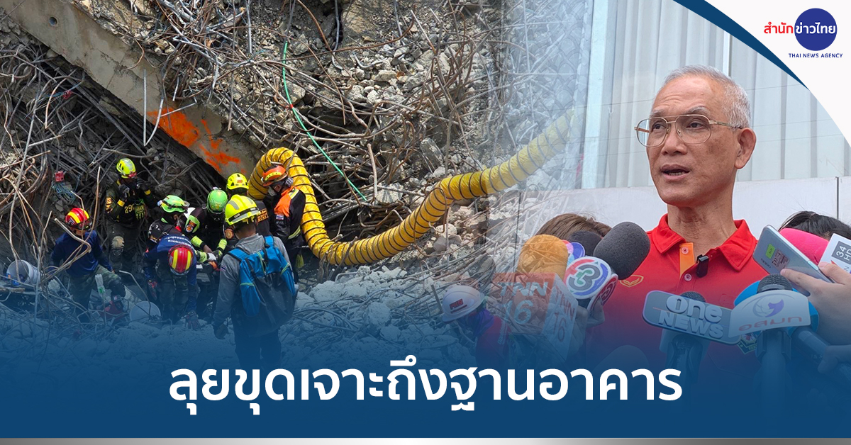 12 เม.ย.- ผอ.ปภ. เผยเดินหน้าขุดเจาะถึงฐานอาคาร แต่ยังไม่พบแสงสว่างหรือสัญญาณชีพ จุดที่ทีมกู้ภัยอ้างพบแสงโทรศัพท์มือถือ
