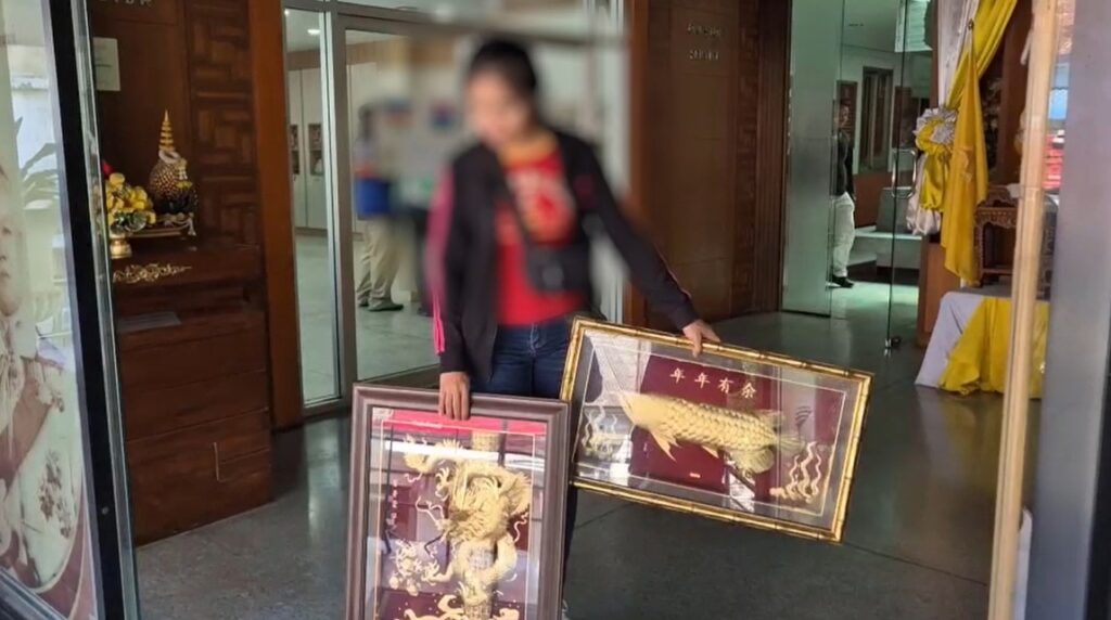 ผู้เสียหาย เล่าว่า ตนซื้อกรอบรูปสัตว์มงคลทองคำ ที่ร้านทองที่ซื้อประจำ โดยทางร้านติดป้ายไว้ว่า FINE GOLD 99.9 ซึ่งซื้อทั้งรูปเสือ ปลามังกร มังกร และม้า รวม 4 รูป สำหรับรูปเสือหน้าร้านติดป้ายขาย 750,000 บาท แต่เจ้าของร้านลดราคาให้เหลือ 450,000 บาท มังกร จากราคา 450,000 บาท เหลือ 250,000 บาท และรูปปลา มังกร จาก 250,000 บาท เหลือ 150,000 บาท และรูปม้า จาก 250,000 บาท เหลือ 150,000 บาท ซึ่งซื้อมาประมาณ 10 กว่าภาพ มูลค่า 1 ล้านกว่าบาท จากเป็นเงินสด