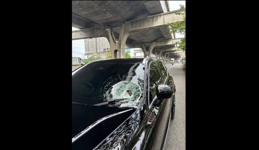 เหตุรถเก๋งถูกก้อนปูนตกใส่กระจกรถ ได้รับความเสียหาย วันที่ 29 เม.ย. เวลา 15.45 น. ถนนเส้นบางนา-ตราด ขาเข้า ก่อนถึง โรงพยาบาลไทยนครินทร์ และได้นำเรื่องราวที่เกิดขึ้นโพสต์รูปและคลิปลงกลุ่มเพื่อขอความช่วยเหลือ