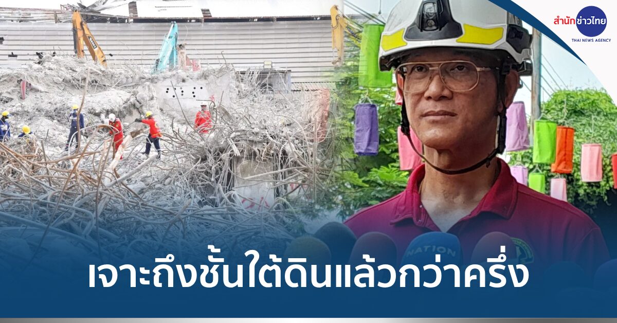 4 พ.ค. – กทม. เผยความคืบหน้าปฏิบัติการค้นหาผู้สูญหายเหตุอาคารสำนักงาน สตง. ถล่มจากแผ่นดินไหว เจาะถึงชั้นใต้ดินแล้วกว่าครึ่ง ย้ำทำต่อจนกว่ามั่นใจไม่มีผู้รอดชีวิตเหลือ