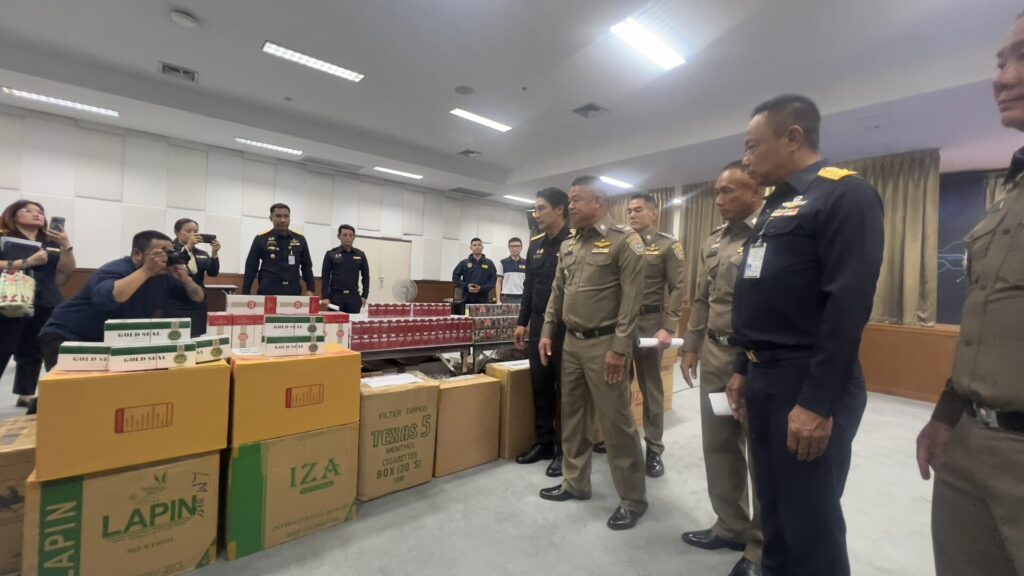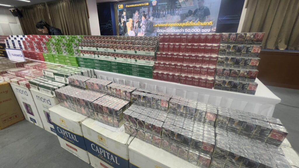 6 พ.ค. – เปิดปฏิบัติการทลายเครือข่ายค้าบุหรี่เถื่อนข้ามชาติรายใหญ่ รวบชาวกัมพูชา 2 คน ตะลึง! พบบุหรี่ไทย-นอกปลอมเพียบ มูลค่าความเสียหายกว่า 3 ล้านบาท