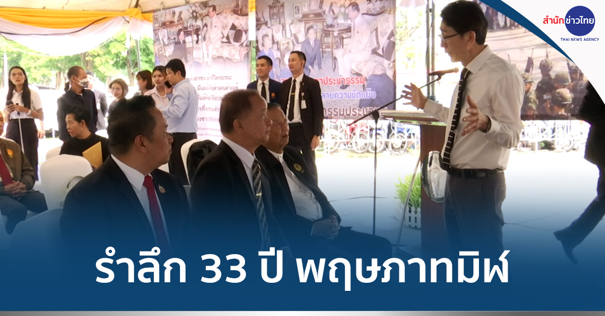17 พ.ค.- รำลึก 33 ปี พฤษภาทมิฬ ประธานรัฐสภา-ผู้นำฝ่ายค้าน-ผู้ว่าฯ กทม. ร่วมวางพวงมาลารำลึกสดุดีวีรชนพฤษภา 35 เตรียมเปิดสวนสาธารณะประชาธิปไตยอีก 2 ปีข้างหน้า หวังไม่เกิดรัฐประหารอีก