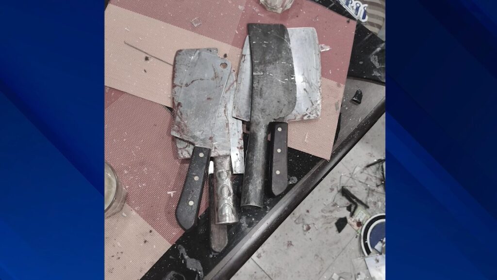 ด้านหน้าร้านมีหญิงชาวอินเดียซึ่งเป็นแม่เจ้าของร้าน อายุ 65 ปี นั่งในสภาพร่างกายมีร่องรอยคราบเลือดจากการเข้าไปห้าม ทำให้มีแผลและรอยฟกช้ำเศษกระจกเต็มศีรษะ และบนโต๊ะมีมีดอีโต้ที่เต็มไปด้วยคราบเลือดวางอยู่จำนวนหลายเล่ม