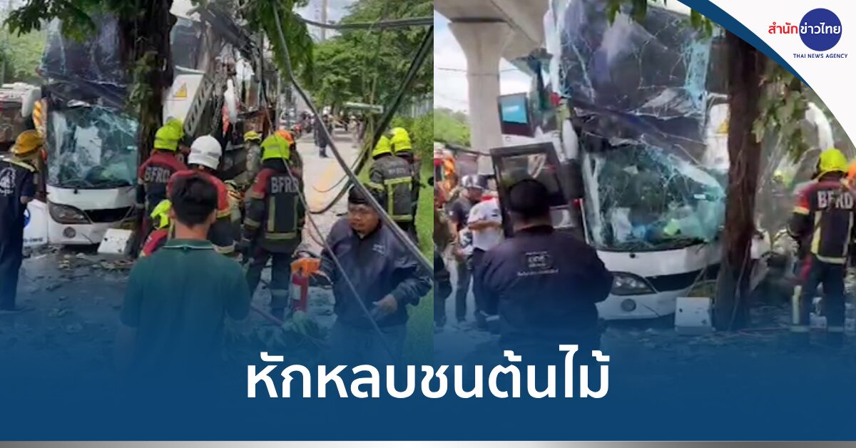 กทม. 2 มิ.ย. – รถบัสรับส่งนักศึกษาชาวอินเดีย เบรกลมไม่ทำงาน คนขับหักหลบชนต้นไม้ ก่อนถึงแยก คปอ. มีผู้บาดเจ็บหลายราย