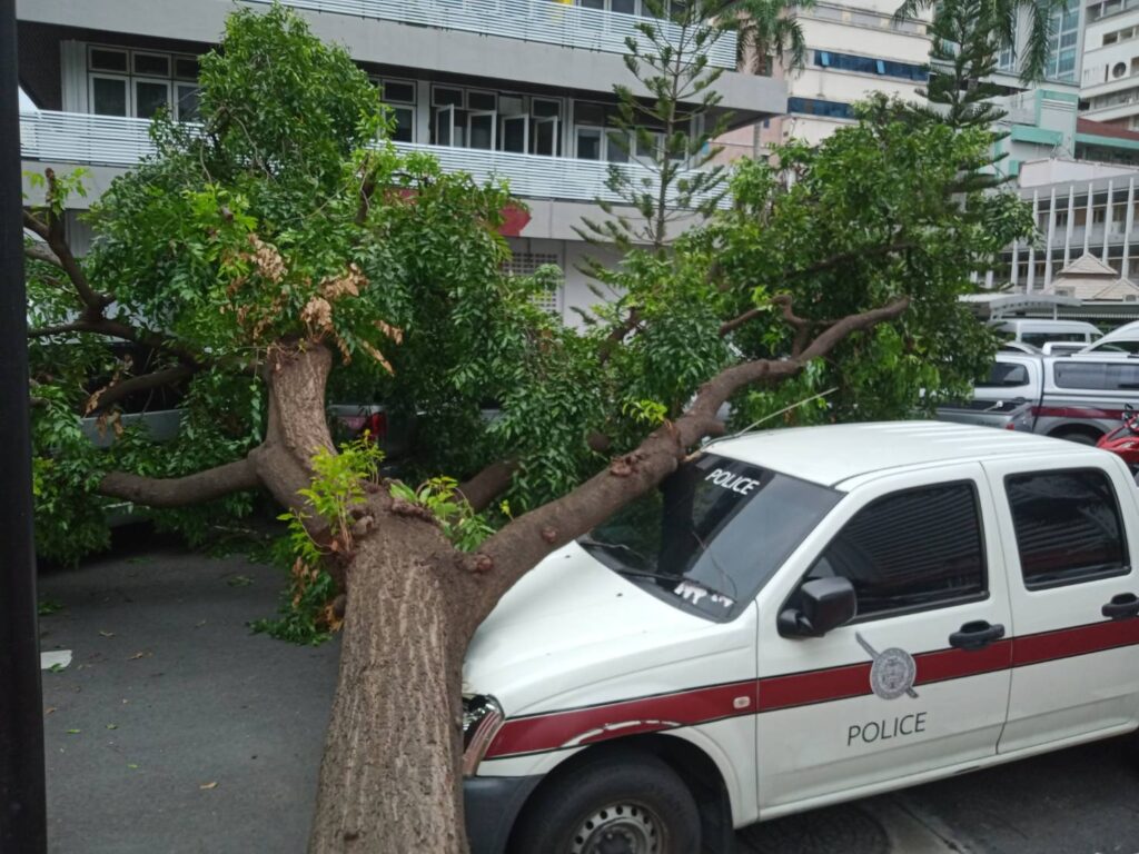 3 มิ.ย.- ตะเคียนยักษ์อายุกว่า 50 ปีภายในสำนักงานตำรวจแห่งชาติ ล้มทับรถทรัพย์สินราชการเสียหาย สาเหตุพายุฝนฟ้าคะนองถล่มกรุง ก่อนเหตุซ้ำซ้อนฝ้าเพดานอาคารศูนย์ฝึกอบรมฯ ในพื้นที่ใกล้เคียงถล่ม