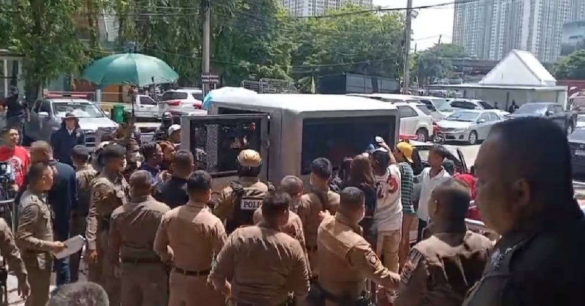 ตำรวจ สน.ท่าเรือ ได้เตรียมรถควบคุมตัวผู้ต้องหามาจอดไว้ที่บริเวณหน้า สน.ท่าเรือ เพื่อเตรียมนำตัวผู้ต้องหาไปฝากขังยังศาล โดยวันนี้จะฝากขังผู้ต้องหาทั้งหมด 5 คน ประกอบด้วยนายนรินทร์ หรือเบิร์ด อายุ 46 ปี, นายธนทร หรือจี อายุ 41 ปี, นายภียกร หรือคิง อายุ 27 ปี, นายเอกชัย หรือเอกบอด อายุ 42 ปี, นายสุวัฒน์ หรือเล็ก อายุ 42 ปี ในข้อหา ร่วมกันปล้นทรัพย์เป็นเหตุให้ผู้อื่นถึงแก่ความตาย, ร่วมกันลักทรัพย์ในเวลากลางคืน, ร่วมกันบุกรุกเคหสถานในเวลากลางคืน, ร่วมกันทำให้เสียทรัพย์และซ่องโจร โดยนายสุวัฒน์ หรือเล็ก ถูกแจ้งข้อกล่าวหาเพิ่มเติม คือข้อหาร่วมกันฆ่าผู้อื่น ทั้งนี้จะนำตัวทั้งหมดฝากขังที่ศาลอาญากรุงเทพใต้ ท้ายคำร้องคัดค้านการประกันตัว