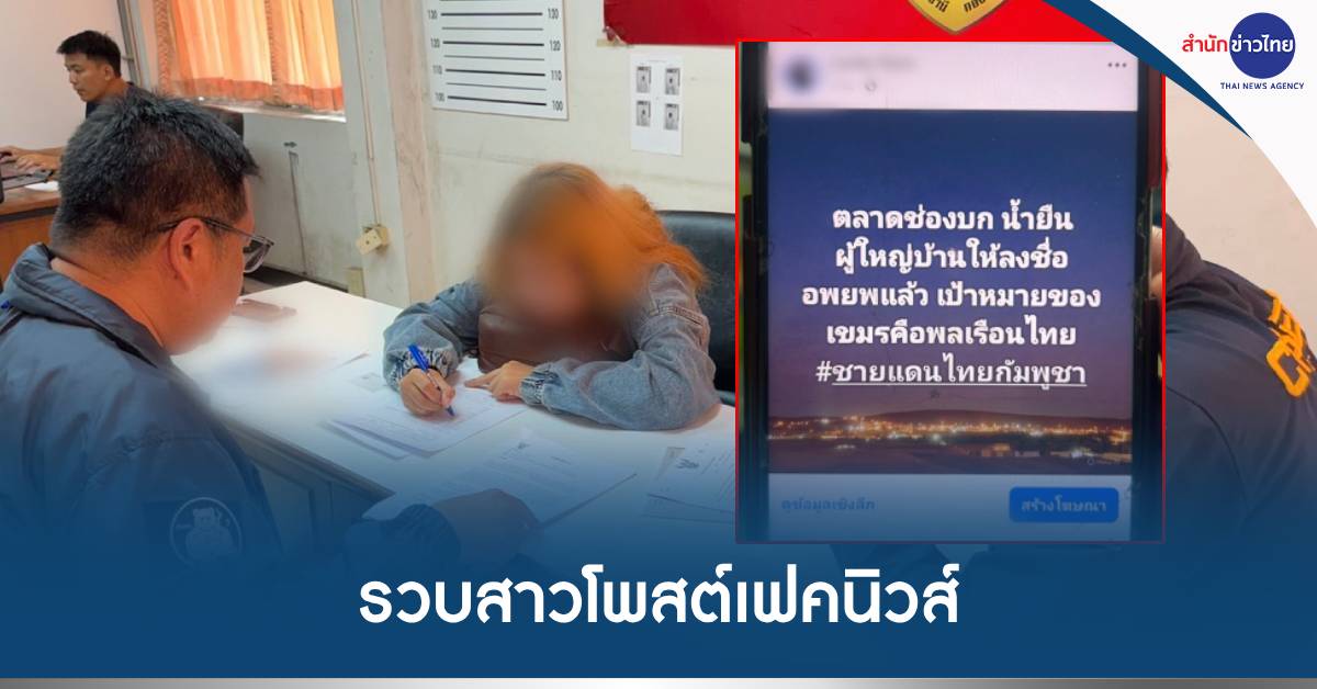 อุบลราชธานี 9 มิ.ย.-ตำรวจไซเบอร์จับผู้ต้องหาโพสต์ข้อความผ่านเฟซบุ๊ก ระบุข้อความในลักษณะบิดเบือนข้อเท็จจริง เกี่ยวกับข้อพิพาทชายแดนและด่านความมั่นคง สร้างความตื่นตระหนกในโซเชียลมีเดียเป็นวงกว้าง