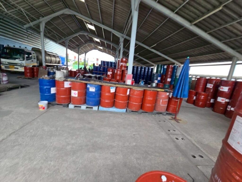 จุดที่ 1 โรงงานขนาดใหญ่ อ.บางเสาธง จ.สมุทรปราการ เป็นสถานที่จัดเก็บและแบ่งบรรจุสารเคมี / ตรวจสอบพบเครื่องจักร ปั๊มดูดขนาด 11 แรงม้า ปั๊มดูดขนาด 8 แรงม้า ปั๊มดูดเคลื่อนที่ขนาด 10 แรงม้า และยังพบวัตถุอันตรายเป็นสารโทรลูอีน 119.6 ตัน / สารอะซิโตน 15.2 ตัน / และสารเคมีอันตรายอื่นๆ อีกหลายรายการรวม 22.99 ตัน