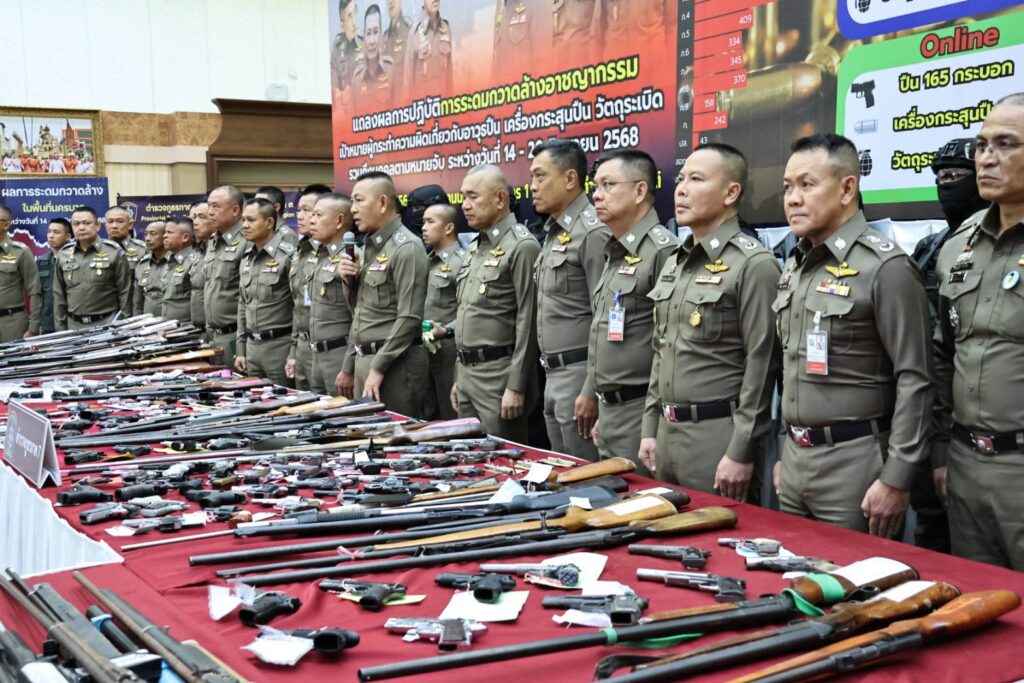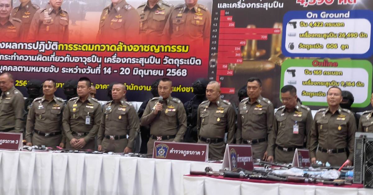 23 มิ.ย. – ผบ.ตร. แถลงผลยุทธการ “ปิดเมือง สยบโจร โค่นอิทธิพล” ระดมกวาดล้างอาวุธปืน 7 วัน ยึดได้กว่า 4,000 กระบอก