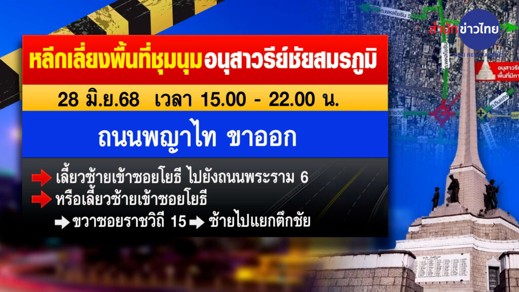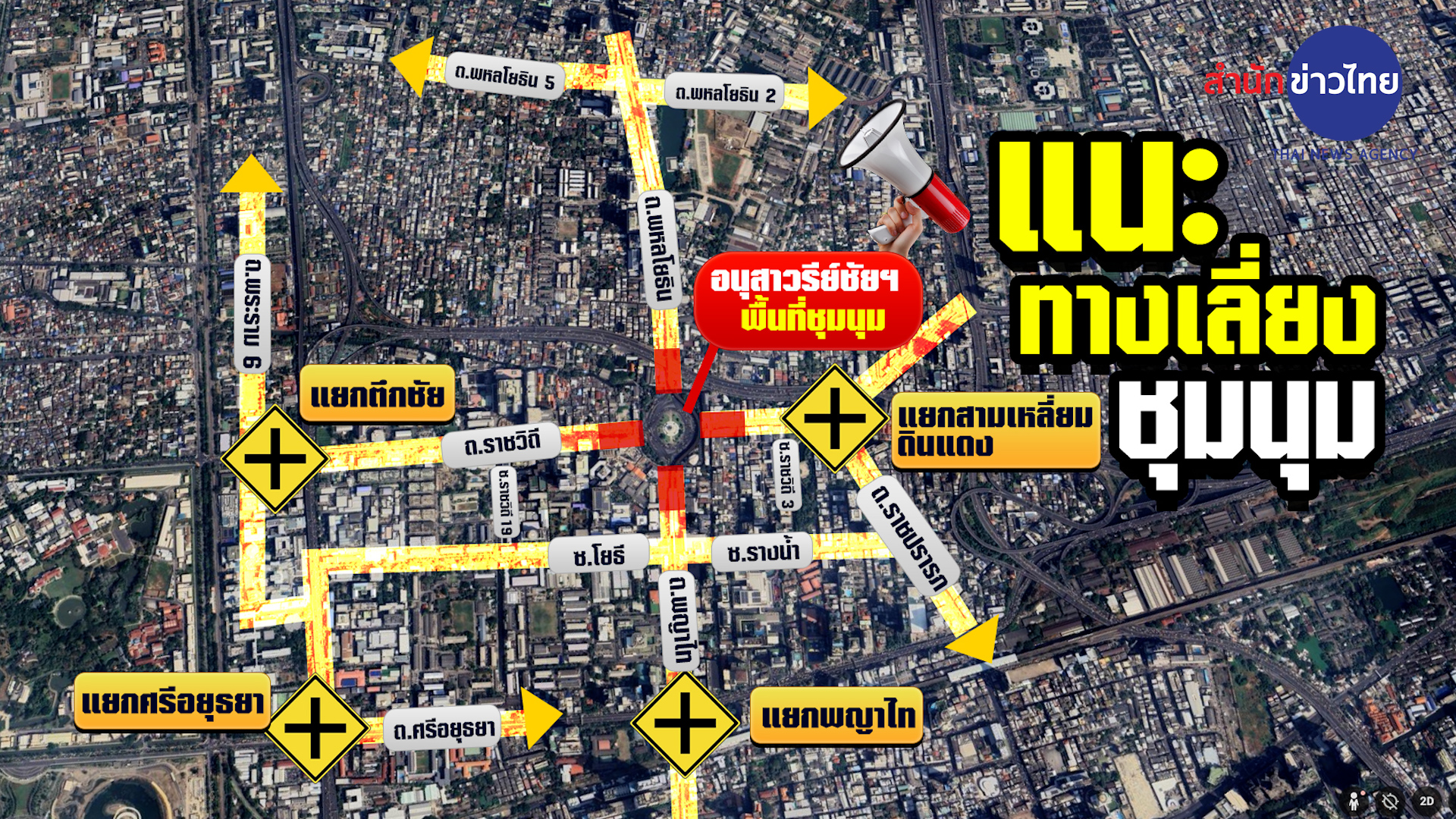 กองบัญชาการตำรวจนครบาล ขอความร่วมมือประชาชนผู้ใช้รถใช้ถนนหลีกเลี่ยงเส้นทาง เนื่องจากวันนี้ตั้งแต่ช่วงเช้า จนถึงเวลาประมาณ 21.00 น. มีการชุมนุมบริเวณอนุสาวรีย์ชัยสมรภูมิ อาจส่งผลกระทบต่อการจราจรโดยรอบ แนะนำเส้นทางเลี่ยงการชุมนุม ดังนี้