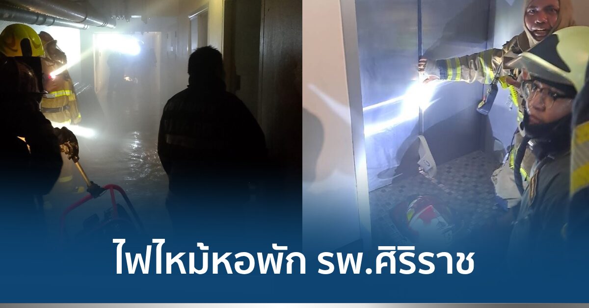 วันที่ 29 มิถุนายน 2568 เวลา 12.30 น. รับแจ้งจากศูนย์วิทยุร่วมไทร เหตุเพลิงไหม้ภายในหอพักพยาบาล (แปดไร่) โรงพยาบาลศิริราช ถนนรถไฟ แขวงศิริราช เขตบางกอกน้อย