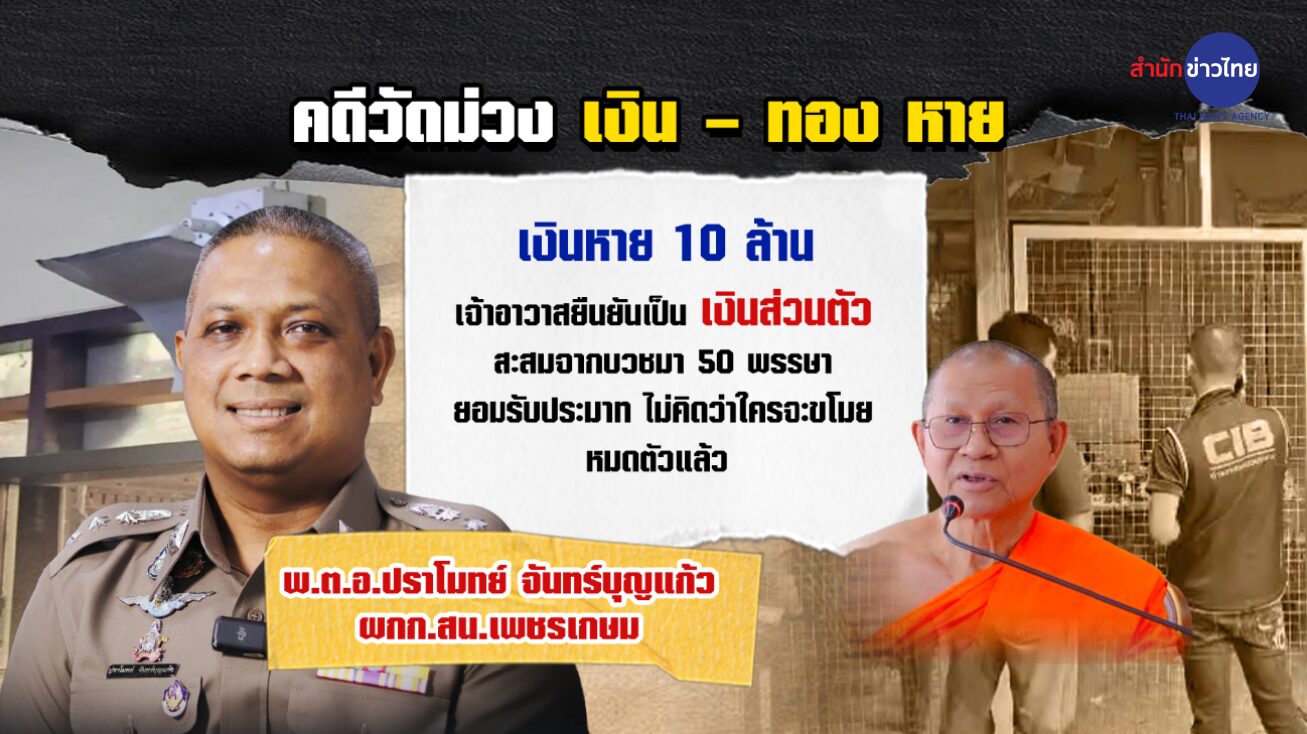 ความคืบหน้า เหตุคนร้ายย่องลักทรัพย์ เงิน 10 ล้าน-ทองคำหนัก 250 บาท ภายในกุฏิเจ้าอาวาส วัดม่วง ซอยเพชรเกษม 63 ถนนเพชรเกษม แขวงหลักสอง เขตบางแค วันนี้ชุดสืบสวนของ บก.ปปป. ร่วมกับชุดคลี่คลายคดีของ สน.เพชรเกษม เดินทางไปที่วัดม่วงเพื่อตรวจหาหลักฐานเพิ่มเติม แต่เมื่อเดินทางไปที่กุฎิเจ้าอาวาส ปรากฏว่า กุฏิปิดเงียบล็อกกุญแจจากด้านหน้า ไร้เงาเจ้าอาวาส เจ้าหน้าที่ ปปป. จึงพยายามโทรไปหาเจ้าอาวาสแต่ไม่สามารถติดต่อได้