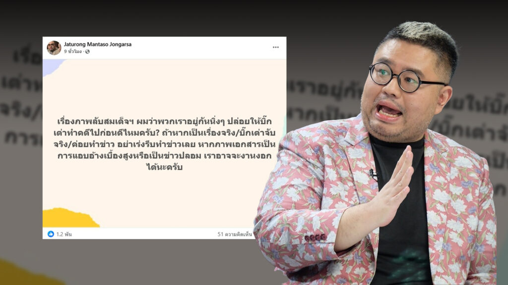 และแม้ทุกคนพยายามเปิดหรือบอกใบ้ แต่ อ.จาตุรงค์ จงอาษา เขียนข้อความให้ชวนคิด “เรื่องภาพลับสมเด็จฯ ผมว่าพวกเราอยู่กันนิ่งๆ ให้บิ๊กเต่าทำคดีไปก่อนดีไหมครับ? ถ้าหากเป็นเองจริง/บิ๊กเต่าจับจริง/ค่อยทำข่าว อย่าเร่งรีบทำข่าวเลย หากภาพเอกสารเป็นการแอบอ้างเบื้องสูงหรือเป็นข่างปลอม เราอาจจะงานงอกได้นะครับ”
