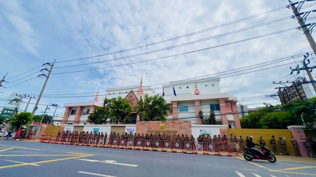 กำลังตำรวจ กว่า 100 นาย ตรึงกำลังบริเวณหน้าสถานทูตกัมพูชา และกระจายกำลังประจำจุดต่างๆ นำแผงเหล็กวางกั้นตลอดแนว ดูแลความเรียบร้อยและรักษาความปลอดภัย รวมถึงดูแลการจราจรโดยรอบพื้นที่