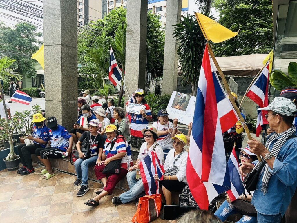 20 ก.ค.- “คปท.-ศปปส.” รวมพลังหน้าสถานทูตกัมพูชา แสดงออกเชิงสัญลักษณ์ เรียกร้องรัฐบาลรักษาอธิปไตยไทย หลังเหตุทหารเหยียบกับระเบิด บาดเจ็บ 3 นาย