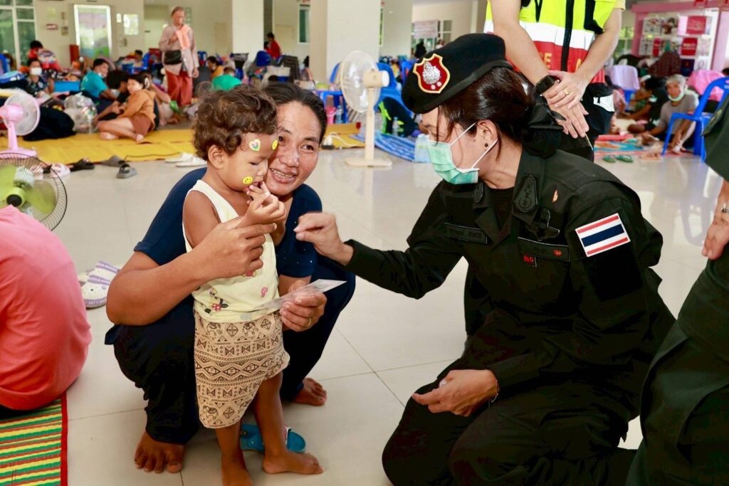 นอกจากนี้ นายแพทย์ใหญ่ ยังได้มอบสิ่งของจำเป็นให้กับประชาชนในศูนย์อพยพจังหวัดสุรินทร์ พร้อมพูดคุยให้กำลังใจ โดยพบว่าหลายคนมีความเครียดจากสถานการณ์ที่ไม่แน่นอน และความกังวลเกี่ยวกับทรัพย์สินที่ทิ้งไว้ในพื้นที่ โรงพยาบาลตำรวจจึงจัดทีมให้คำปรึกษาด้านจิตใจ และกำชับให้ทีมแพทย์-พยาบาลประจำศูนย์อพยพดูแลสุขภาพกายของประชาชนอย่างใกล้ชิด หลังพบว่ามีผู้เริ่มเจ็บป่วยบางส่วน