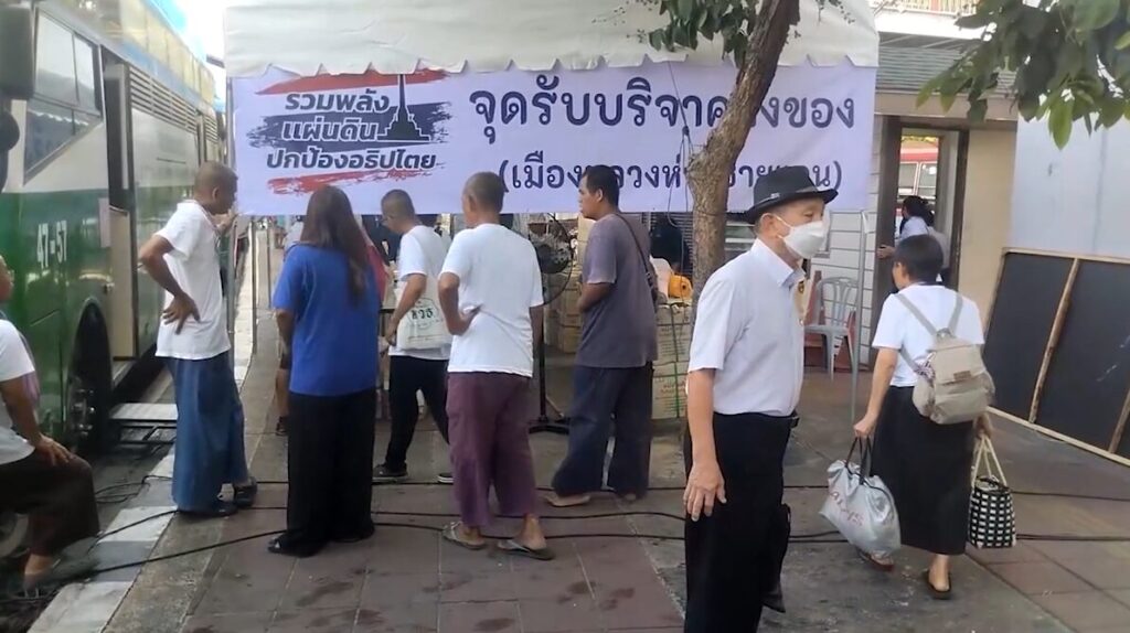 อนุสาวรีย์ชัยสมรภูมิ วันนี้กลุ่มคณะรวมพลังแผ่นดินปกป้องอธิปไตย นัดหมายรวมตัว ส่งกำลังใจรวมพลังแผ่นดิน จากแนวหลังสู่แนวหน้า ภายใต้ภารกิจ “เพื่อหัวใจไม่ยอมแพ้ ประกาศชาติจะไม่ล้มลง” โดยจะเริ่มเปิดเวทีอย่างเป็นทางการในเวลา 12.00 น. อย่างไรก็ตาม บรรยากาศในขณะนี้ เริ่มมีประชาชนทยอยเดินทางมาในพื้นที่แล้ว