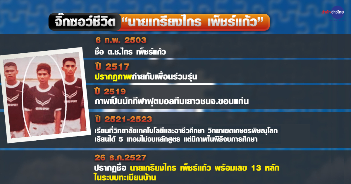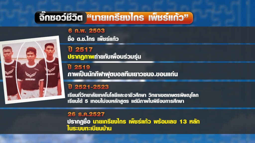 วันที่ 26 ธ.ค. 2527 ปรากฏชื่อ นายเกรียงไกร เพ็ชร์แก้ว พร้อมเลข 13 หลัก ในระบบทะเบียนบ้าน