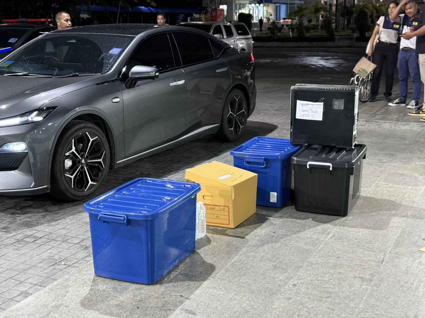 ด้านเจ้าหน้าที่ชุดเข้าตรวจค้นตามจุดต่างๆ เริ่มทยอยนำของกลางเข้ามาที่กองบังคับการปราบปราม มีกล่องหลักฐานจากจุดตรวจค้นจุดต่างๆ และจากภายในวัดพระบาทน้ำพุ โดยพบว่าส่วนหนึ่งเป็นเอกสารที่เกี่ยวข้องกับคดีดังกล่าว หนังสือนิตยสารกล่าวถึงรายละเอียดโครงการต่างๆ ของวัด และคอมพิวเตอร์ที่ตรวจยึดจากภายในมูลนิธิใจฟ้าฯ รวมเอกสารทั้งหมดมากกว่า 20 กล่อง CPU คอมพิวเตอร์ 2 เครื่อง และเครื่องทำลายเอกสาร เตรียมนำชิ้นส่วนเอกสารที่ถูกทำลายมาประกอบกลับมาใหม่ เพื่อใช้ประกอบการดำเนินคดีกับผู้เกี่ยวข้อง