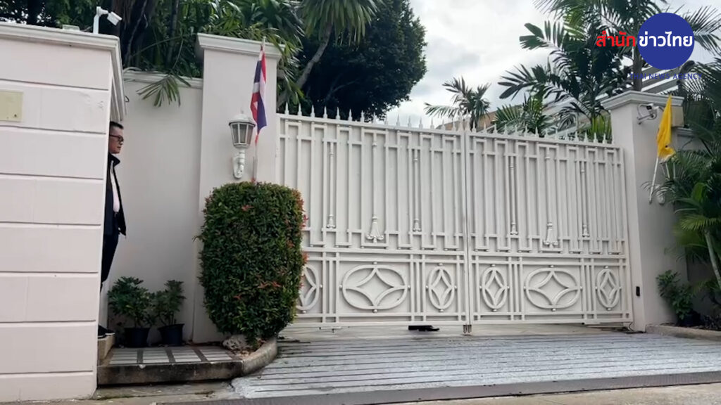 สำหรับบรรยากาศช่วงเช้ารอบบ้านเป็นไปอย่างเงียบสงบ มีผู้สื่อข่าวมาปักหลักติดตามความเคลื่อนไหวอยู่ด้านหน้าบ้าน ขณะเดียวกันมีเจ้าหน้าที่ตำรวจจาก สน.บางพลัด ทั้งในและนอกเครื่องแบบได้มาประจำการเพื่ออำนวยความสะดวกด้านการจราจรและดูแลความเรียบร้อย