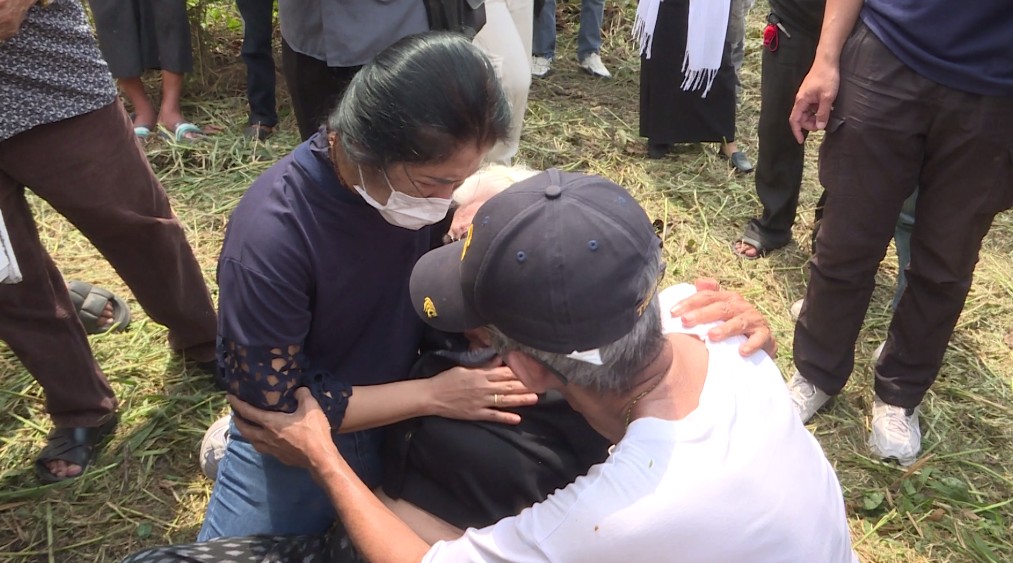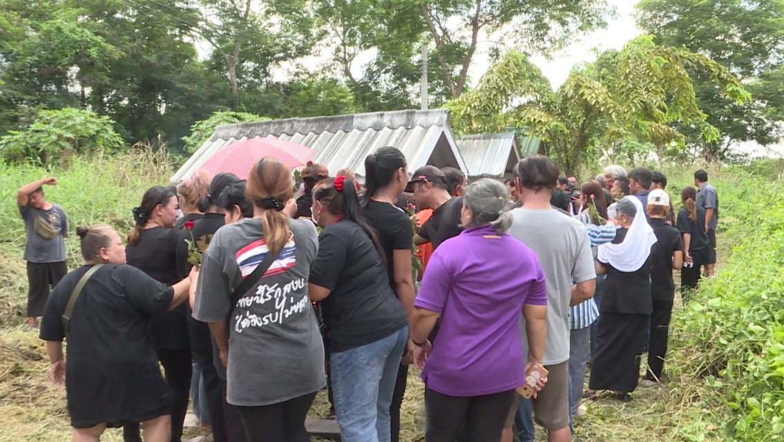 ขณะที่ น.ส.รัตนาภร อายุ 57 ปี ภรรยาของนายเจียน จุดธูปไหว้ศพสามีเป็นคนสุดท้าย ก่อนจะเข้าไปเคาะหน้าโลงศพ 1 ครั้ง พร้อมกับร่ำไห้เป็นลมล้มทั้งยืน