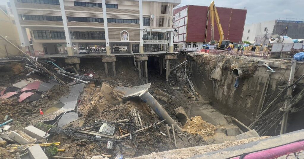 ส่วนที่มีการคาดการณ์ว่าจะเกิดฝนตกในระยะนี้ เบื้องต้นเจ้าหน้าที่อยู่ระหว่างหาทางเพื่อป้องกันไม่ให้น้ำไหลจากด้านหลังอาคารเข้าไปในหลุม เพราะหากไหลเข้าไปแล้วอาจทำให้เสาเข็มขาดอาคารก็อาจจะพังถล่ม ทรุดลงมาได้ เบื้องต้นเจ้าหน้าที่ได้ใช้ทรายกั้นเพื่อเบี่ยงน้ำให้ไหลไปออกตามช่องทางอื่น สิ่งที่ตนรู้สึกกังวลขณะนี้ คือ อาคาร สน.สามเสน และสายไฟที่ปริแตกอยู่ด้านล่าง ขณะนี้ก็จะต้องตัดสายไฟดังกล่าว โดยจะตัดทั้งสองฝั่ง ซึ่งมีระยะประมาณ 12-15 เมตร แต่จะทำการตัดเพียงครึ่งเดียว เพื่อไม่ให้เกิดการดึงรั้ง ซึ่งการทำงานก็ไม่ยาก แต่ยืนยันว่าจากการประเมินขณะนี้ก็ยังไม่พบความเสี่ยง