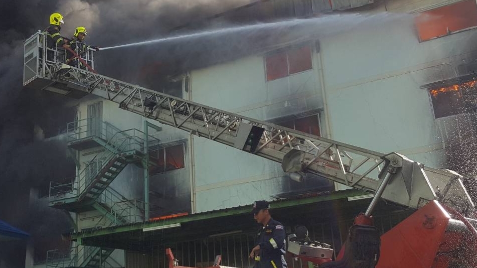 เจ้าหน้าที่สำนักป้องกันและบรรเทาสาธารณภัย ช่วยกันระดมฉีดน้ำหล่อเลี้ยงอาคารเก็บสินค้า สูง 4 ชั้นของบริษัทแลนด์โก้ สปอร์ตแอนด์มิวสิคเคิล จำกัด ซึ่งเป็นตัวแทนขายส่งเครื่องดนตรีและอุปกรณ์กีฬาชื่อดังหลายยี่ห้อ ซอยกาญจนาภิเษก 2 เขตบางบอน หลังเมื่อช่วง 8 นาฬิกาที่ผ่านมาได้เกิดเหตุเพลิงไหม้ขึ้นบริเวณชั้น 4 ก่อนลุกลามไปทุกชั้นอย่างรวดเร็ว