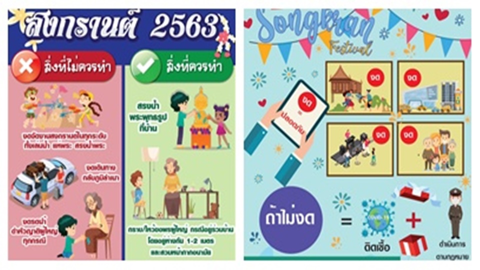 กรุงเทพฯ 12 เม.ย. สำนักงานตำรวจแห่งชาติ โดยกองสารนิเทศ แจ้งประชาสัมพันธ์ข้อปฏิบัติเทศกาลสงกรานต์ 2563 4 ไม่ 3 ทำ เพื่อป้องกันเชื้อโควิด19 .-สำนักข่าวไทย