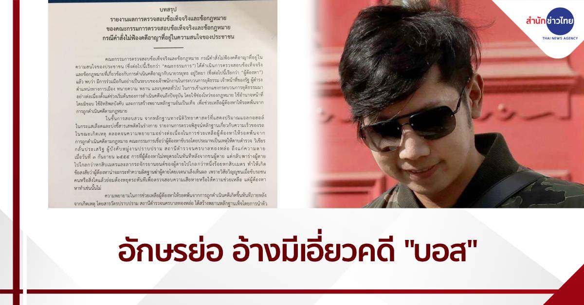 กทม. 2 ก.ย.-เปิดเอกสารสรุปคดี “บอส อยู่วิทยา” เผยอักษรย่อ อ้างมีเอี่ยว ทำรอดพ้นถูกดำเนินคดี