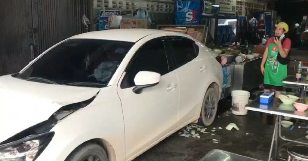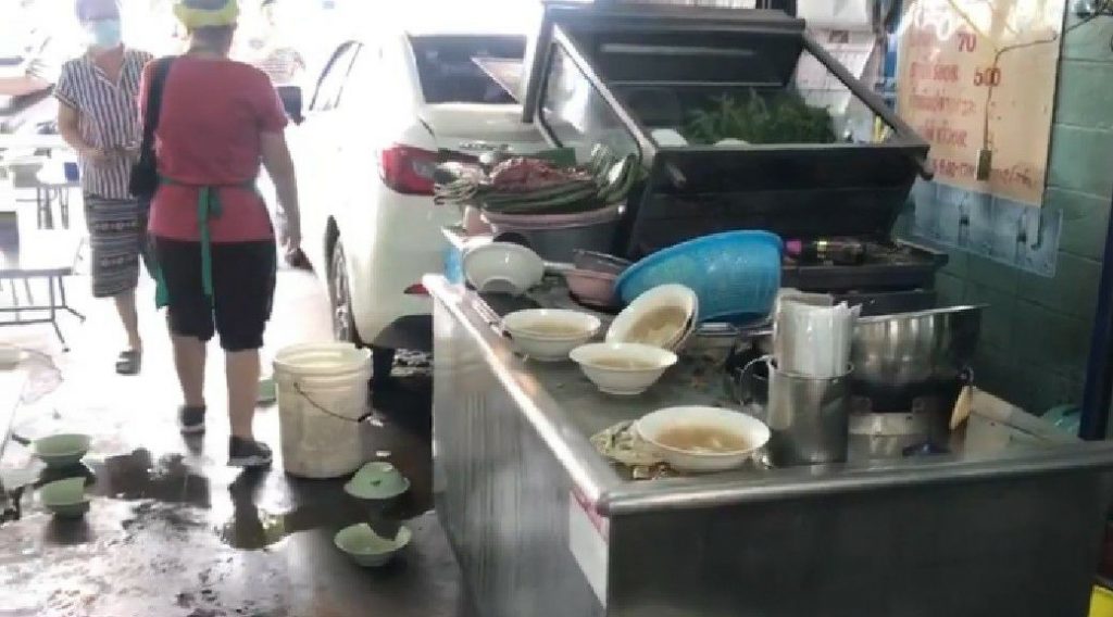 จากการสอบถามนายสุรัตน์ นวรัตนจำเนียร อายุ 80 ปี เจ้าของร้านก๋วยเตี๋ยว เล่าว่า ก่อนเกิดเหตุขณะกำลังยืนอยู่หน้าร้าน ได้ยินเสียงรถเบรกเสียงดังเมื่อหันไปดูเห็นรถยนต์สีขาว ถอยหลังเข้ามาชนร้านอย่างจังข้าวของที่เตรียมไว้ขายแตกกระจาย โชคดีตอนเกิดเหตุมีลูกค้าแค่ 2 คน ส่วนแม่ครัวเดินออกไปเตรียมของด้านหลังทำให้ไม่มีคนในร้านบาดเจ็บ และว่าเหตุรถพุ่งชนร้านครั้งนี้ถือเป็นครั้งที่ 2 ในรอบ 30 ปีที่เปิดร้าน ครั้งแรกหลายปีก่อนเป็นเหตุรถเบนส์ชนสามล้อพุ่งเข้ามาในร้าน คู่กรณีที่เป็นสามล้อเสียชีวิต