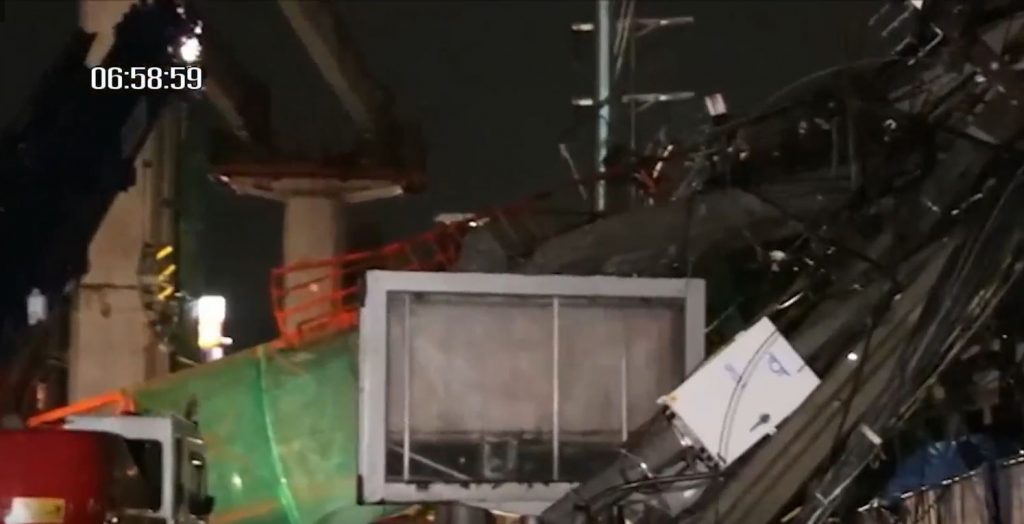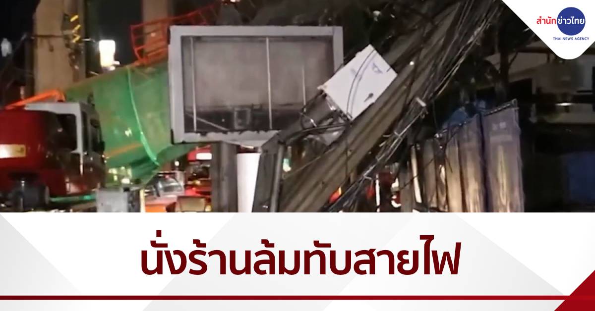 กทม. 28 ก.ย.-นั่งร้านก่อสร้างรถไฟฟ้าสูง 15 เมตรล้มทับสายไฟ ทำให้เสาไฟฟ้าหัก 2 ต้นบนถนนลาดพร้าว เหตุจากฝนตกและลมแรง
