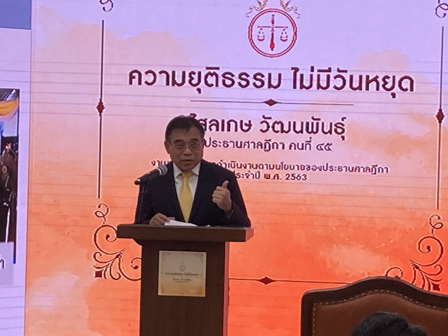เวลา 15.00 น. ที่ ห้องประชุมใหญ่ สำนักประธานศาลฎีกา นายไสลเกษ วัฒนพันธุ์ ประธานศาลฎีกา แถลงผลการดำเนินงานตามนโยบายของประธานศาลฎีกาตลอด 1 ปี ที่ผ่านมา ภายใต้ชื่องาน “ความยุติธรรม ไม่มีวันหยุด” ผ่านระบบการประชุมทางไกลผ่านจอภาพไปยังศาลยุติธรรมทั่วประเทศ โดยมีนางเมทินี ชโลธร รองประธานศาลฎีกา ว่าที่ประธานศาลฎีกาคนถัดไป ร่วมงานด้วย