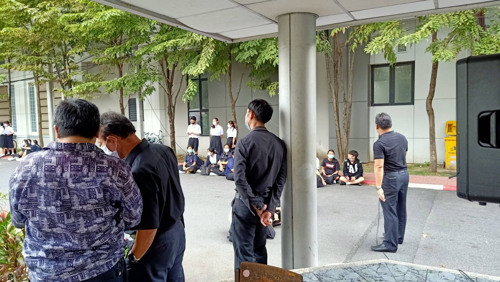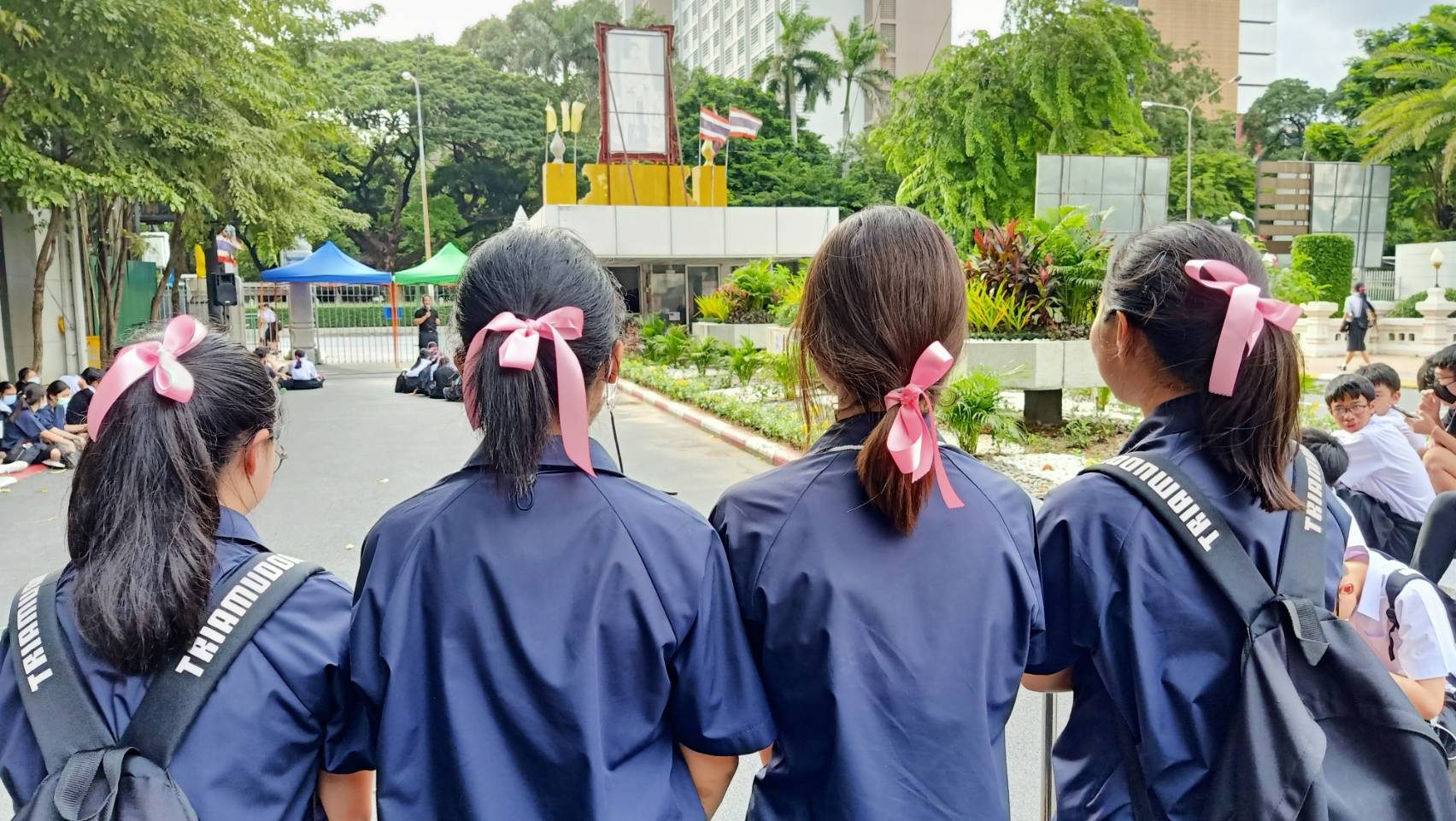 กรุงเทพฯ 30 ก.ย.-ครู-นักเรียน รร.เตรียมอุดมศึกษา สวมชุดดำ-ผูกโบสีชมพู ไล่ ผอ. ปมออกคำสั่งแต่งตั้งโยกย้ายไม่เป็นธรรมก่อนเกษียณ ล่าสุด ยุติการรวมตัว นัดใหม่พรุ่งนี้เช้า