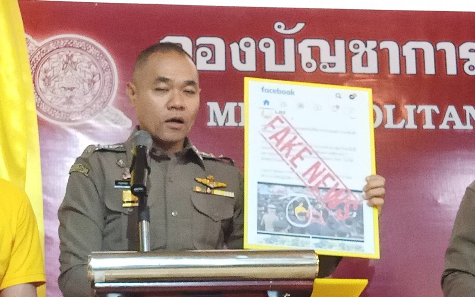 ด้าน พ.ต.อ.กฤษณะ พัฒนเจริญ รองโฆษกสำนักงานตำรวจแห่งชาติ ระบุถึงการปล่อยข่าวบิดเบือน ในลักษณะที่มีการแชร์ภาพบุคคลสวมเสื้อสีเหลือง สั่งการตำรวจให้จับกุมแกนนำและกลุ่มผู้ชุมนุม โดยยืนยันว่า ข่าวดังกล่าวไม่เป็นความจริง เพราะบุคคลที่ปรากฎในภาพเป็นตำรวจ ซึ่งได้รับมอบหมายให้เข้าไปสืบสวนหาข่าวในพื้นที่ชุมนุม พร้อมขอให้ประชาชนตรวจสอบข้อมูลให้ชัดเจนก่อน