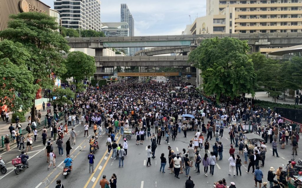 ผู้สื่อข่าวรายงานว่า เมื่อเวลา 16.00 น. บรรยากาศบริเวณแยกราชประสงค์ มีกลุ่มผู้ชุมนุมจำนวนมาก นำโดย ไมค์ระยอง มารวมตัว และผักดันแนวกั้นของเจ้าหน้าที่ เพื่อปิดการจราจร บริเวณแยกราชประสงค์ จนเจ้าหน้าที่ยอมถอย ซึ่งขณะนี้กลุ่มผู้ชุมนุมได้ปักหลักอยู่กลางแยกราชประสงค์ ทำให้สภาพการจราจรบริเวณดังกล่าวถูกปิดไปโดยปริยาย ผู้ชุมนุมส่วนใหญ่เป็นกลุ่มวัยรุ่นและนักเรียนนักศึกษา ได้เรียกร้องให้เจ้าหน้าที่ปล่อยตัวแกนนำกลุ่มผู้ชุมนุมที่ถูกจับกุมไปก่อนหน้านี้ และปราศรัยต่อว่าเจ้าหน้าที่ว่าทำงานอยู่ภายใต้เผด็จการ ขณะนี้กลุ่มผู้ชุมนุมได้นั่งลงกลางแยกราชประสงค์