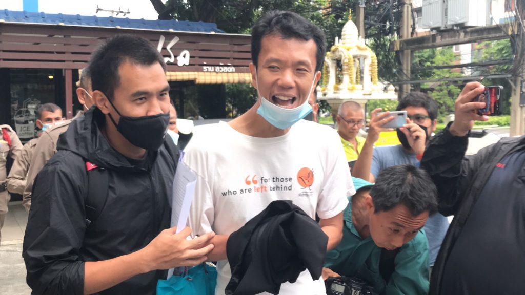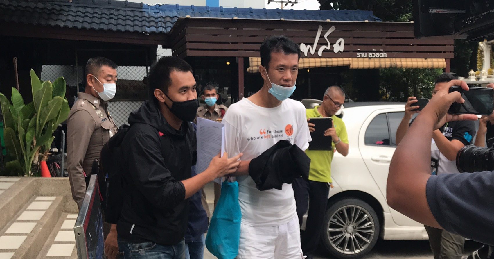 ตำรวจ สน.ลาดพร้าว ควบคุมตัวนายเอกชัย หงส์กังวาล นักเคลื่อนไหวทางการเมือง ออกจาก สน. ลาดพร้าว เพื่อไปรับทราบข้อกล่าวหาที่กองบังคับการตำรวจตระเวนชายแดนภาค 1 จังหวัดปทุมธานี หรือ ตชด.ภ.1 หลังถูกจับกุมเมื่อช่วงเช้าที่ผ่านมาตามหมายจับศาลอาญา มาตรา 110 ผู้ใดกระทำการประทุษร้ายต่อพระองค์ หรือเสรีภาพของพระราชินีหรือรัชทายาท หรือต่อร่างกายหรือเสรีภาพของผู้สำเร็จราชการแทนพระองค์ ต้องระวางโทษจำคุกตลอดชีวิต หรือจำคุกตั้งแต่สิบหกปีถึงยี่สิบปี ผู้ใดพยายามกระทำการเช่นว่านั้น ต้องระวางโทษเช่นเดียวกัน จากกรณีขัดขวางขบวนเสด็จพระราชดำเนินสมเด็จพระนางเจ้าฯพระบรมราชินี ช่วงเหตุการณ์ชุมนุมเมื่อวันที่ 14 ตุลาคมที่ผ่านมานั้น